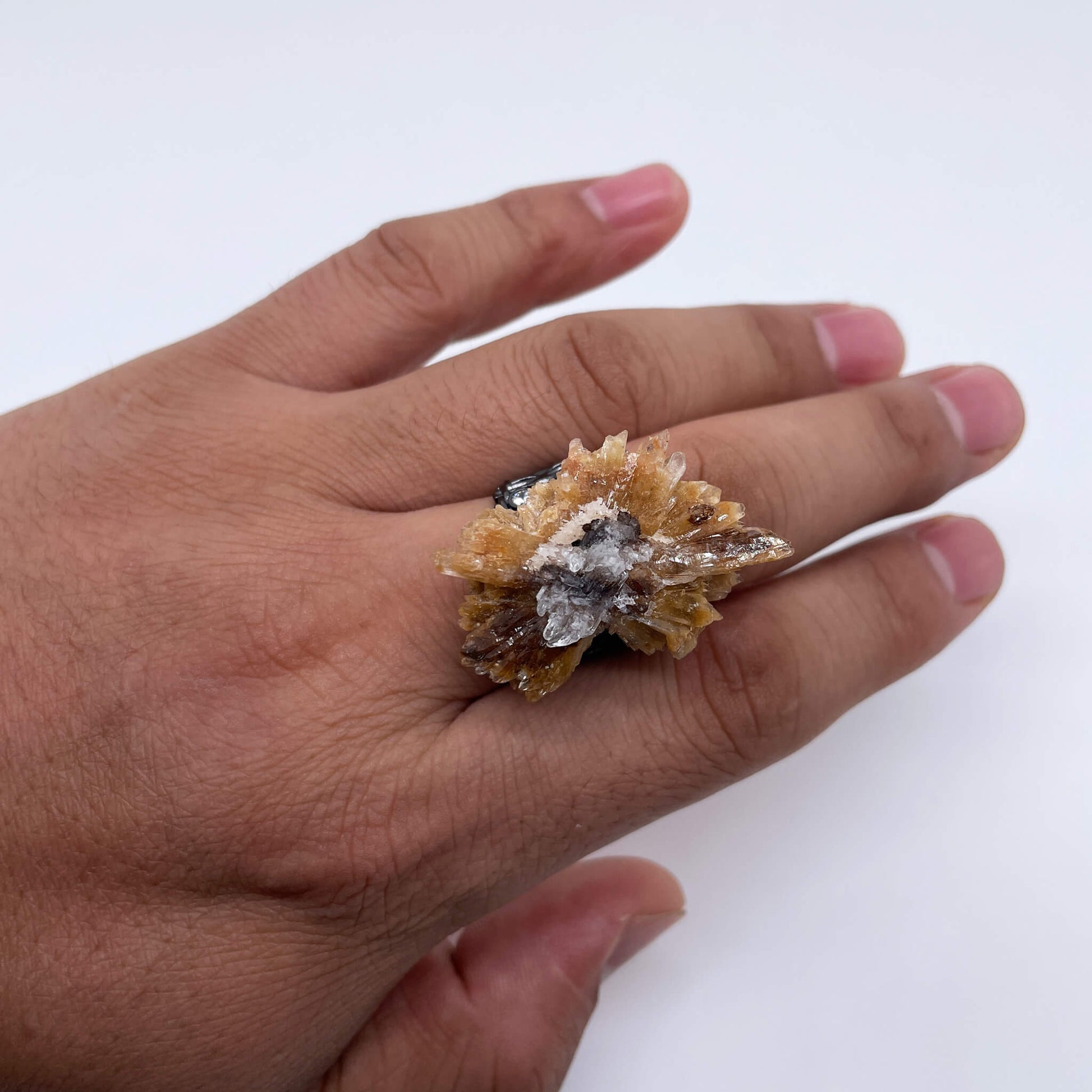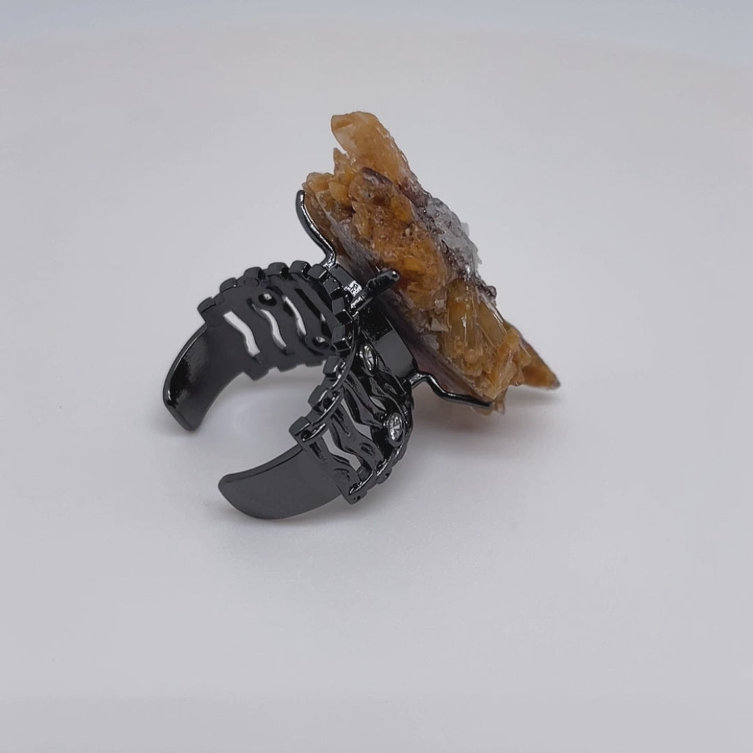 The calcite crystals on the ring bloom like golden rays of light, implying igniting the fire of hope deep within one’s heart. It symbolizes transforming life’s experiences into inner strength, blooming with unique brilliance in the ordinary, and represents the affirmation of self-worth and passionate expectations for the future.