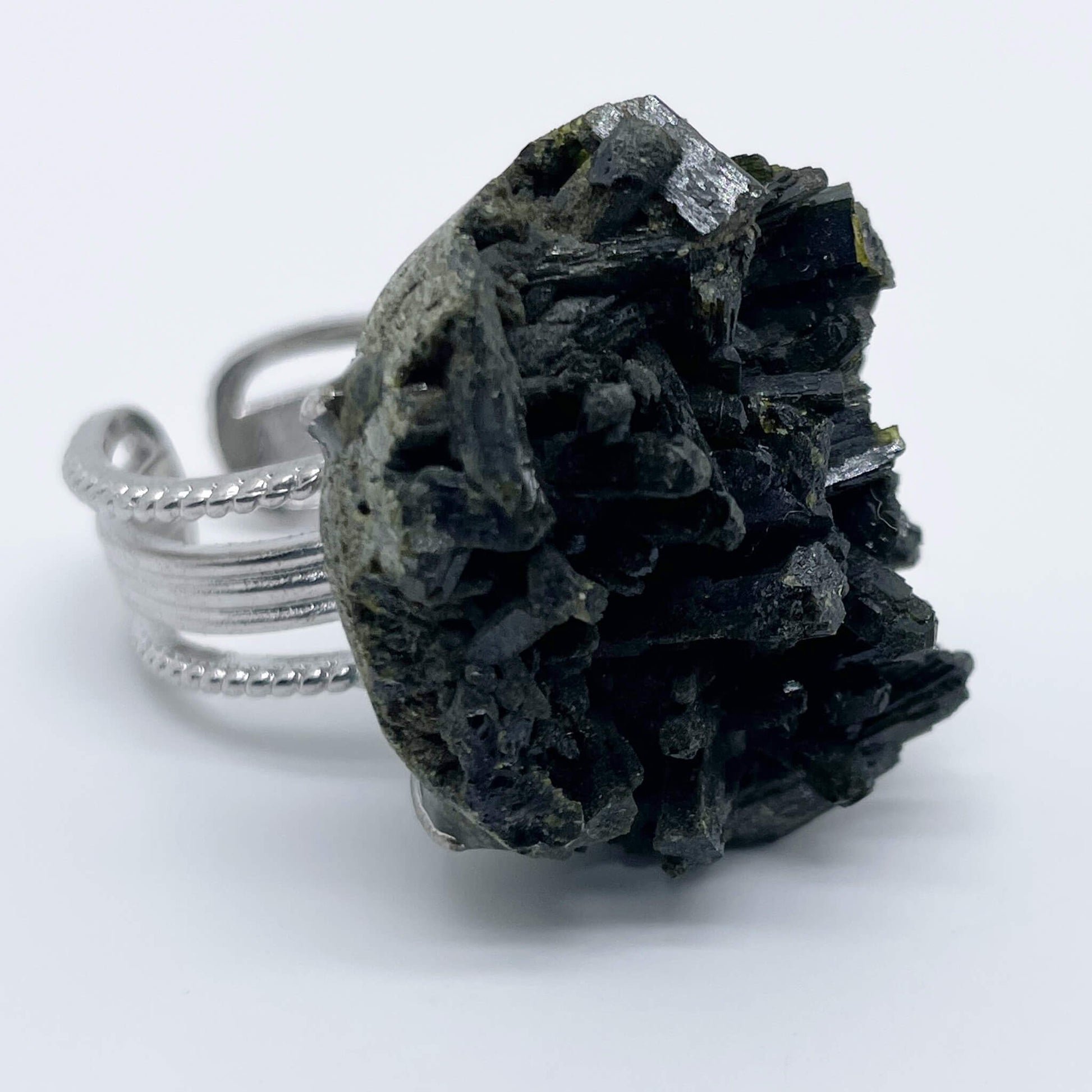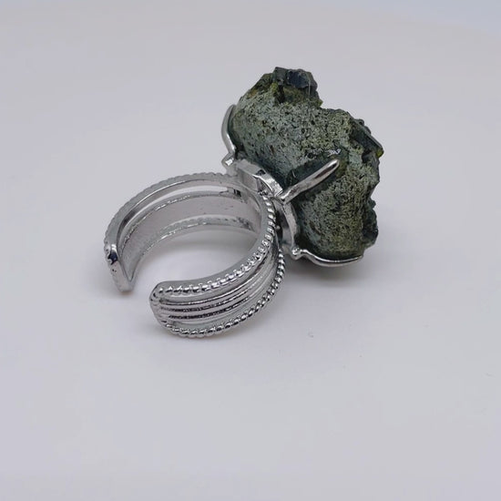 The main stone of the ring is an epidote crystal cluster, and the ring setting is made of alloy.