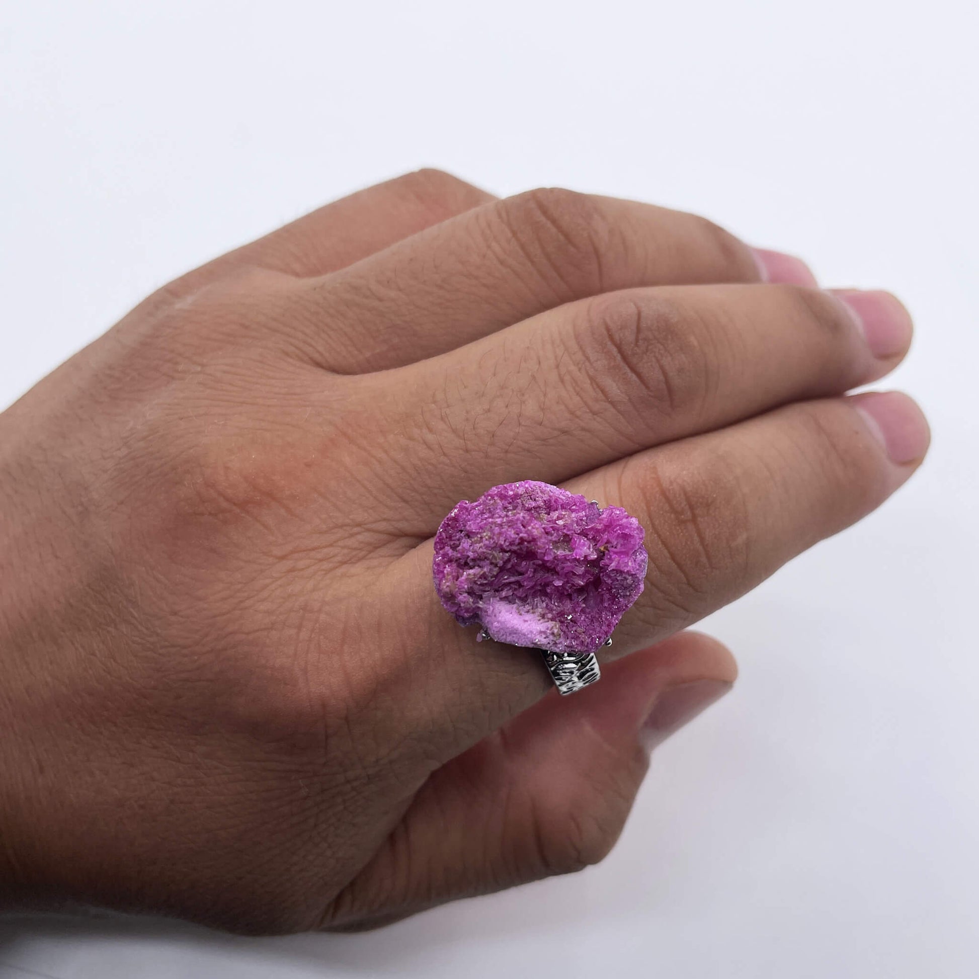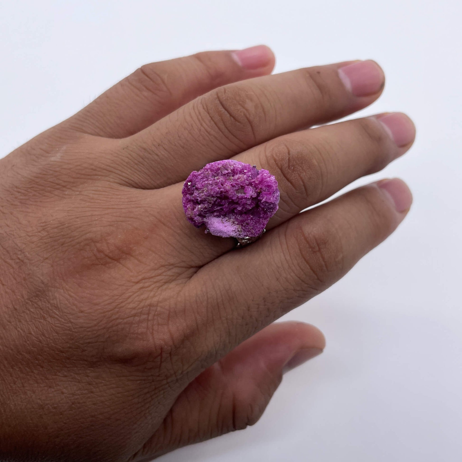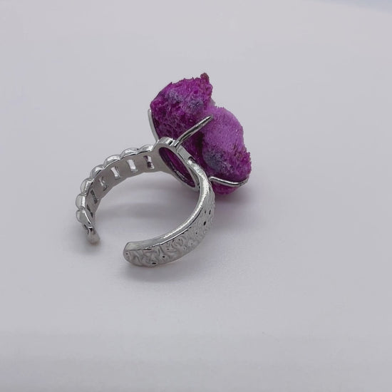 This raw stone ring symbolizes mystery, romance and uniqueness. Purple itself has a mysterious and romantic color. The unique shape and color of the natural purple raw stone represent unique beauty, and each one is different. At the same time, since the raw stone comes from nature, it also conveys the admiration for the beauty of nature. It implies that the wearer can feel romance and mystery in life, and show a distinctive personality and the pursuit of beautiful things.