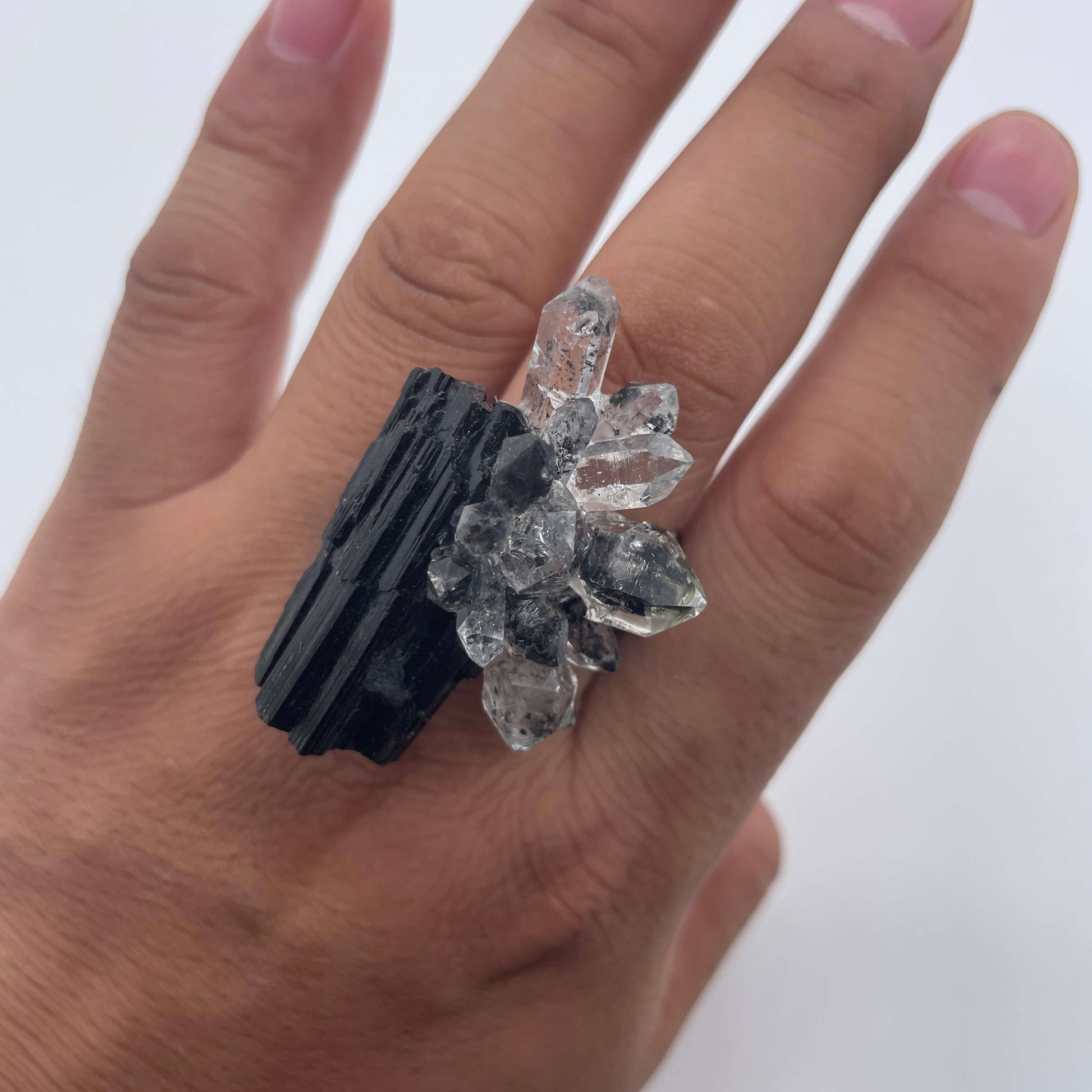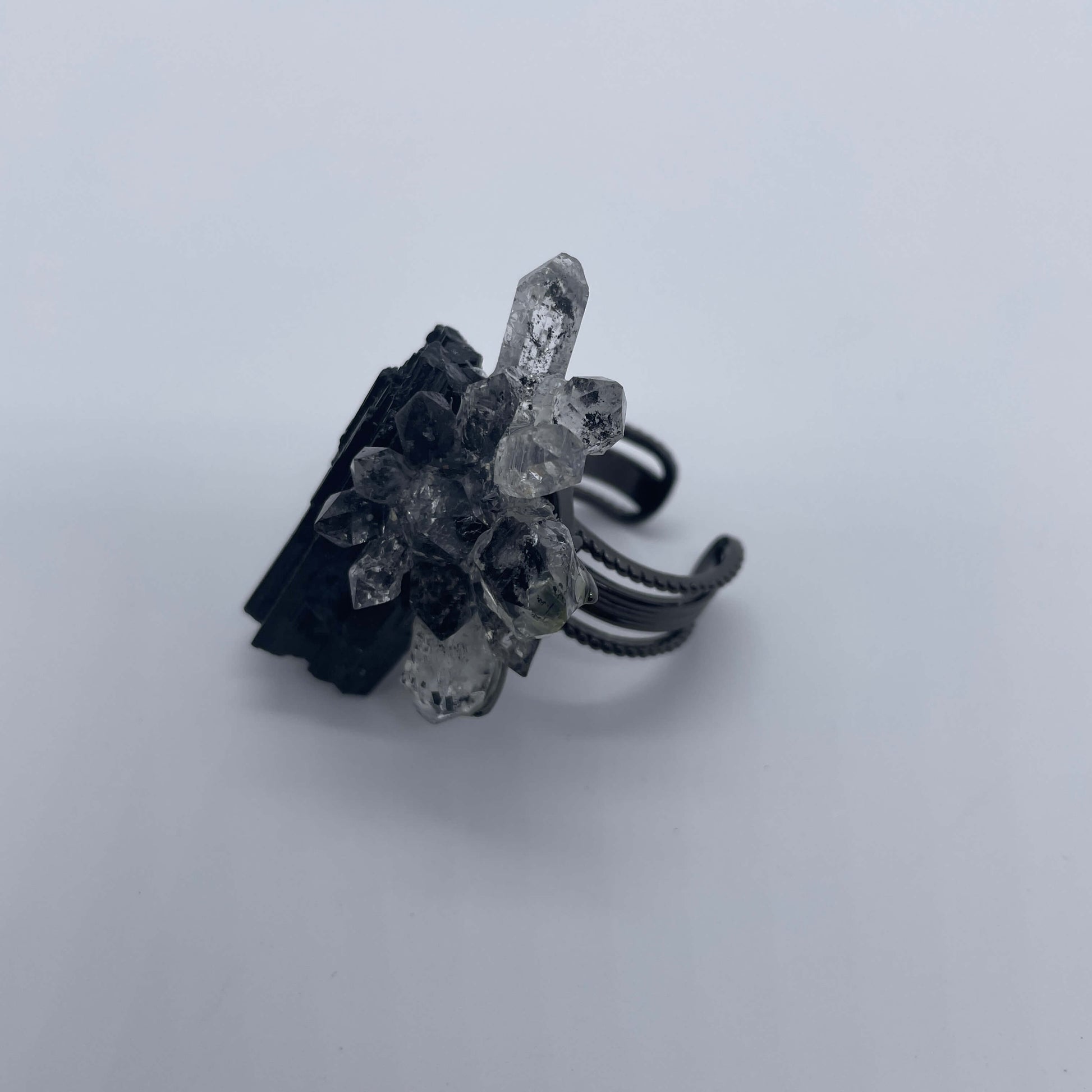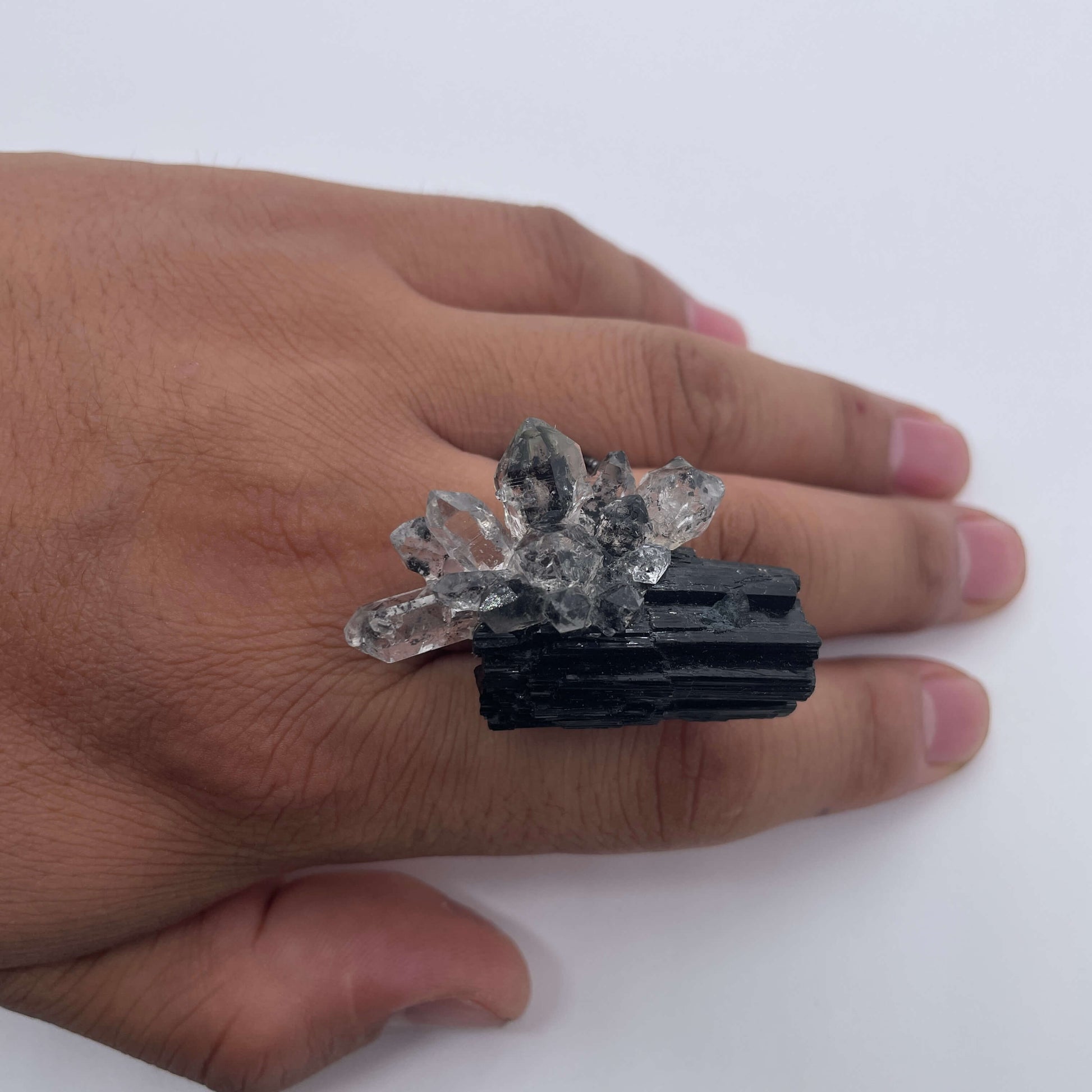 Black tourmaline symbolizes calm protection and resistance to negative energy, just like a solid night base. The crystal cluster represents light, hope and inspiration, shining like starlight to illuminate the way forward. Overall, it symbolizes pursuing hope under protection and blooming one's own light in the dark night.