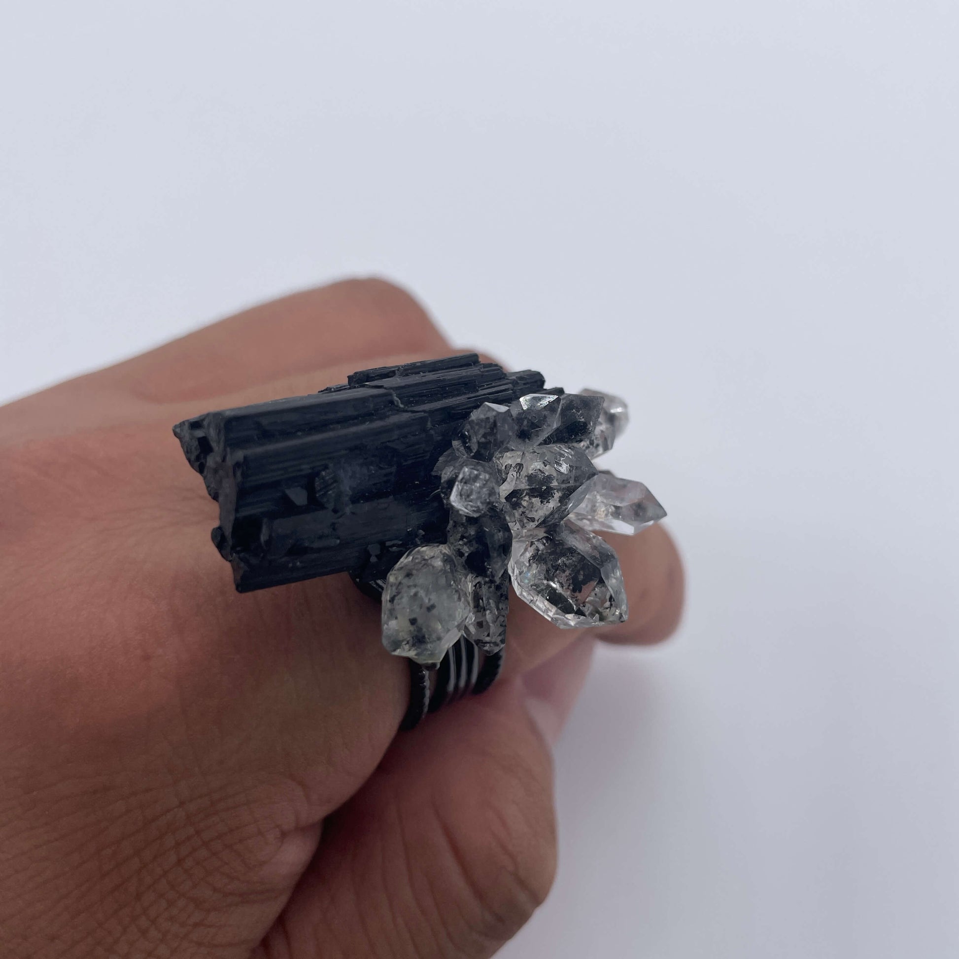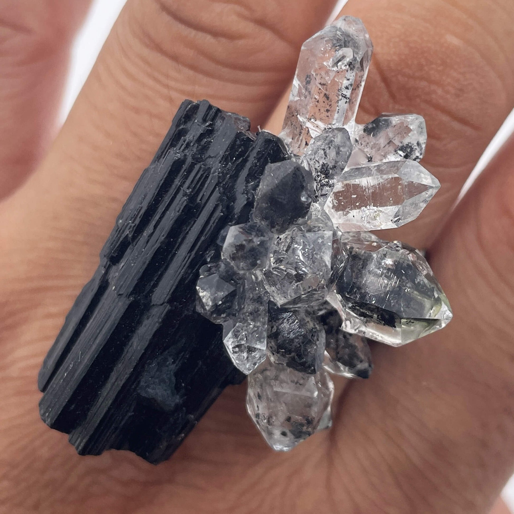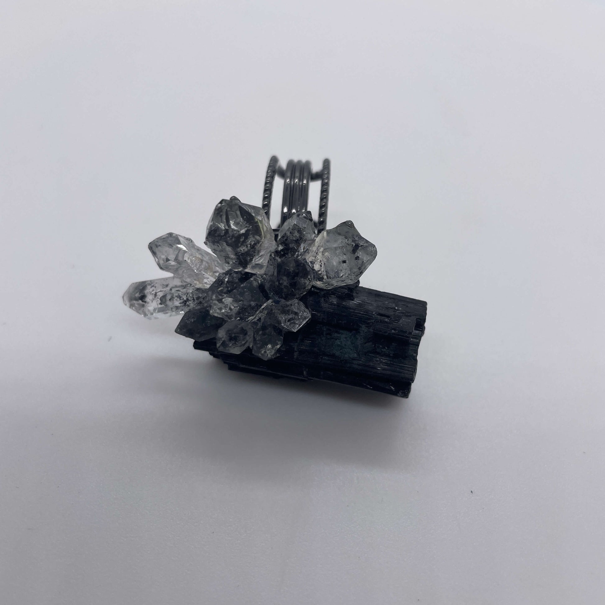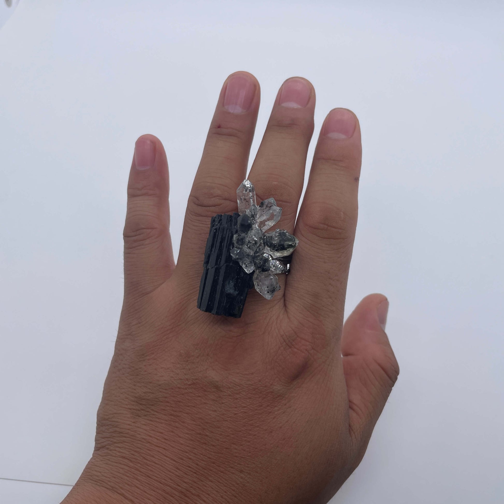 Black tourmaline symbolizes calm protection and resistance to negative energy, just like a solid night base. The crystal cluster represents light, hope and inspiration, shining like starlight to illuminate the way forward. Overall, it symbolizes pursuing hope under protection and blooming one's own light in the dark night.