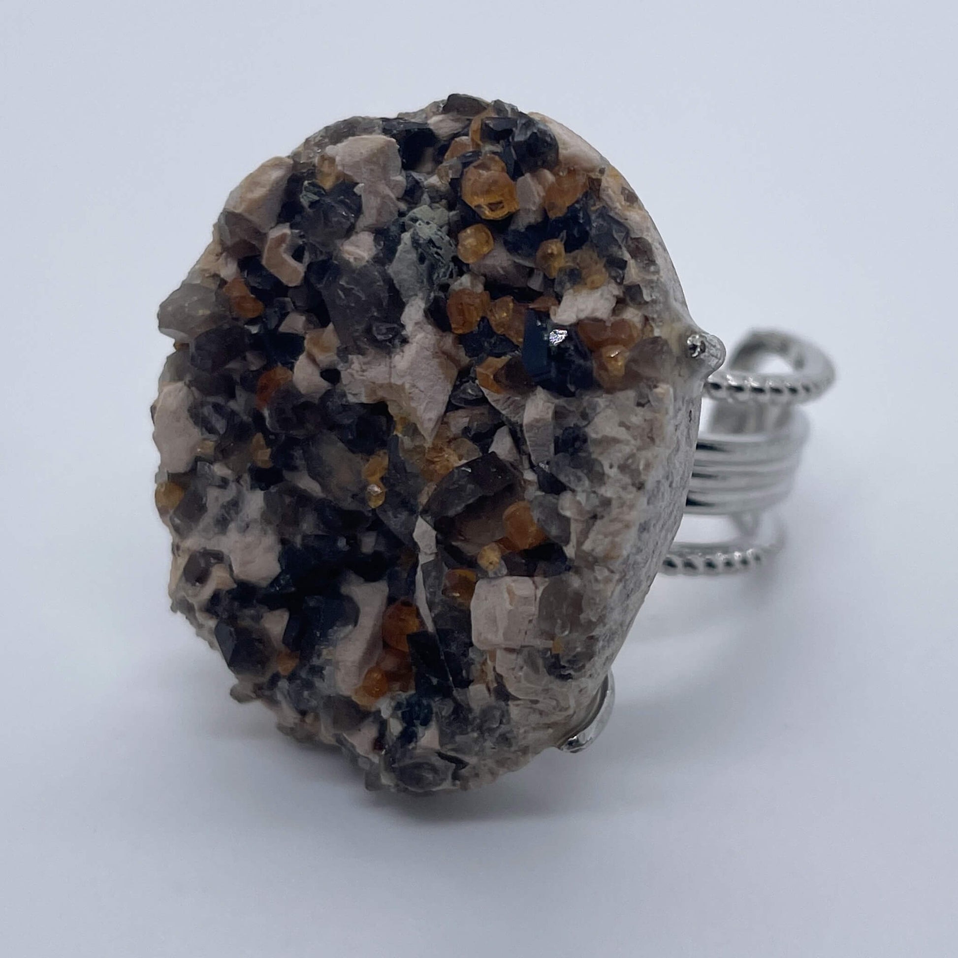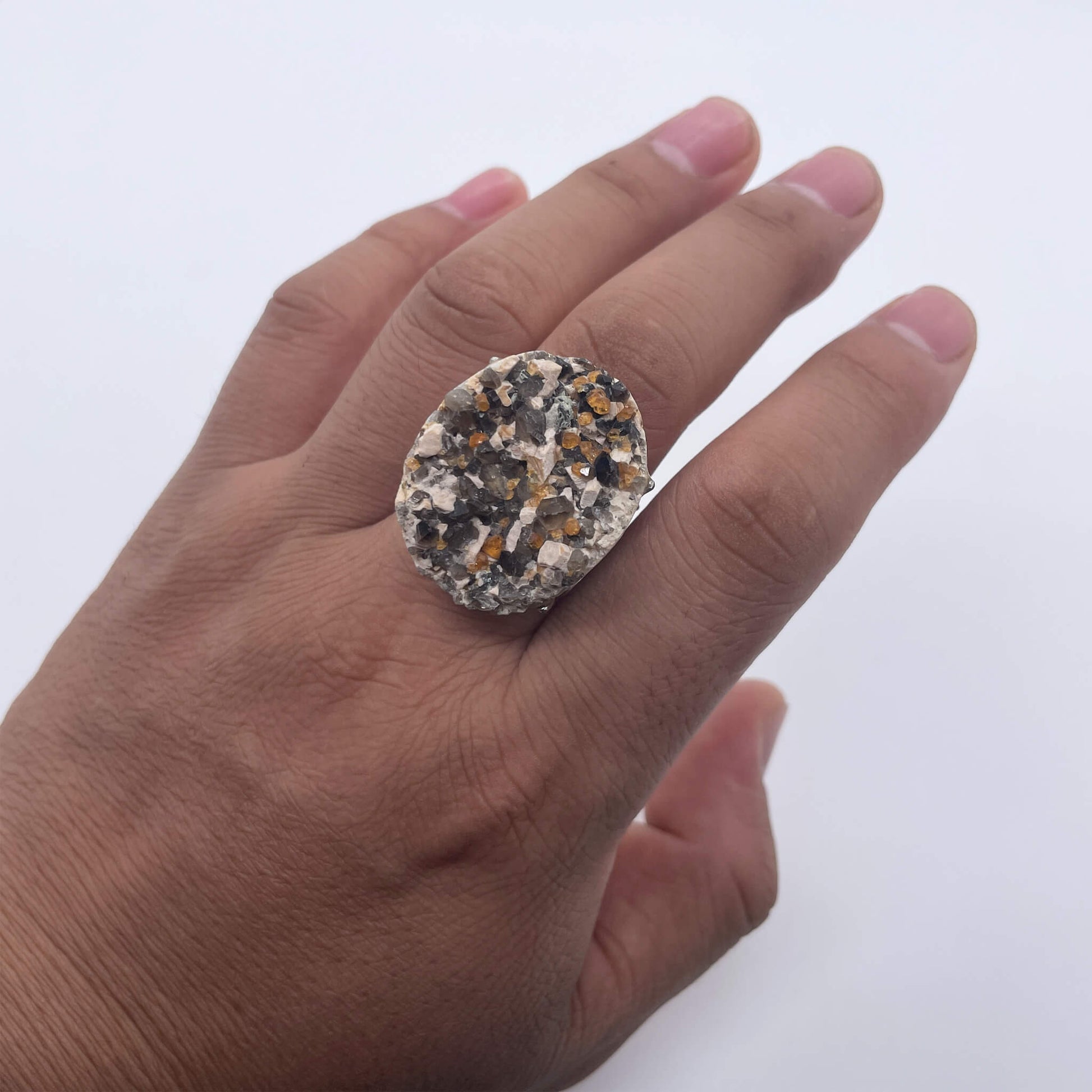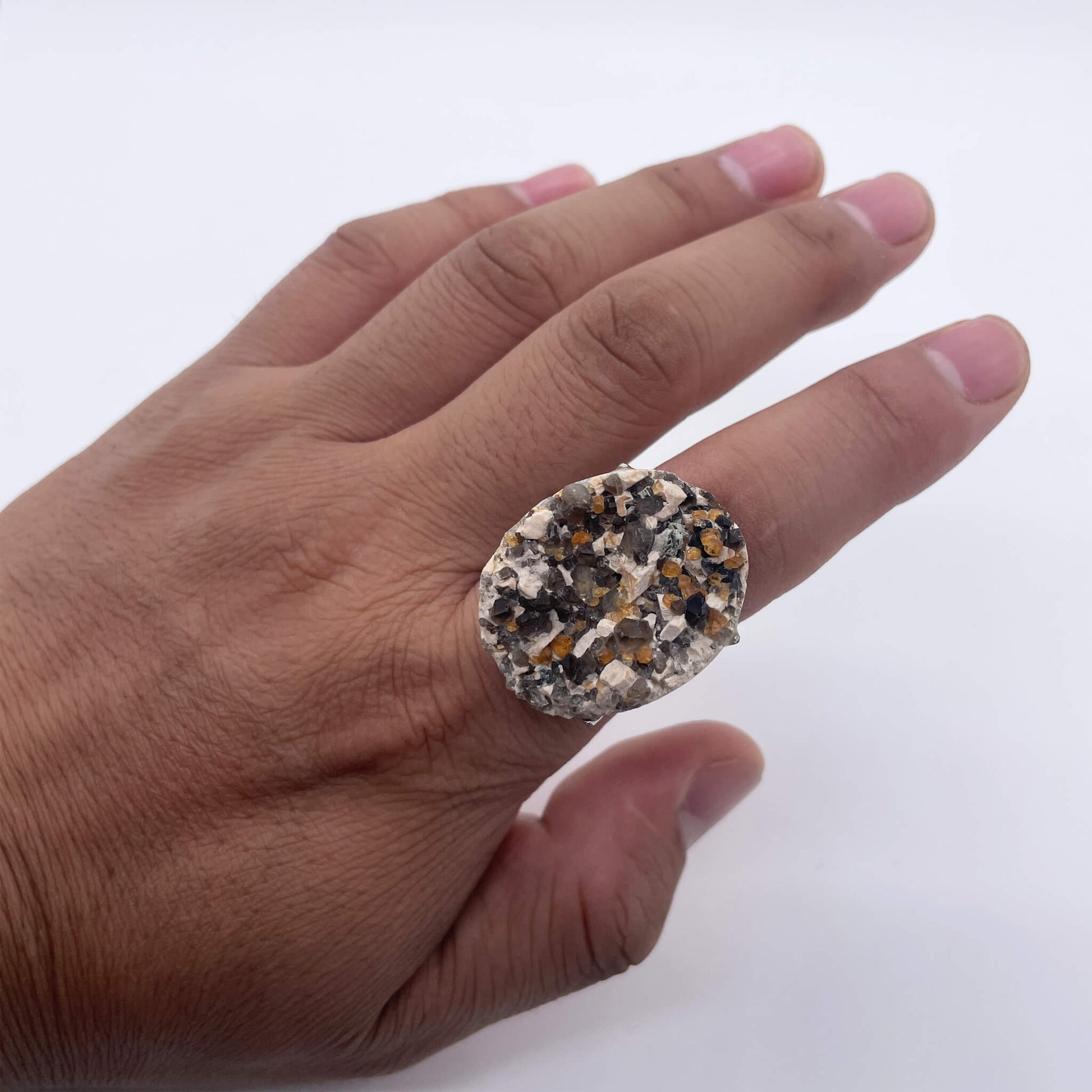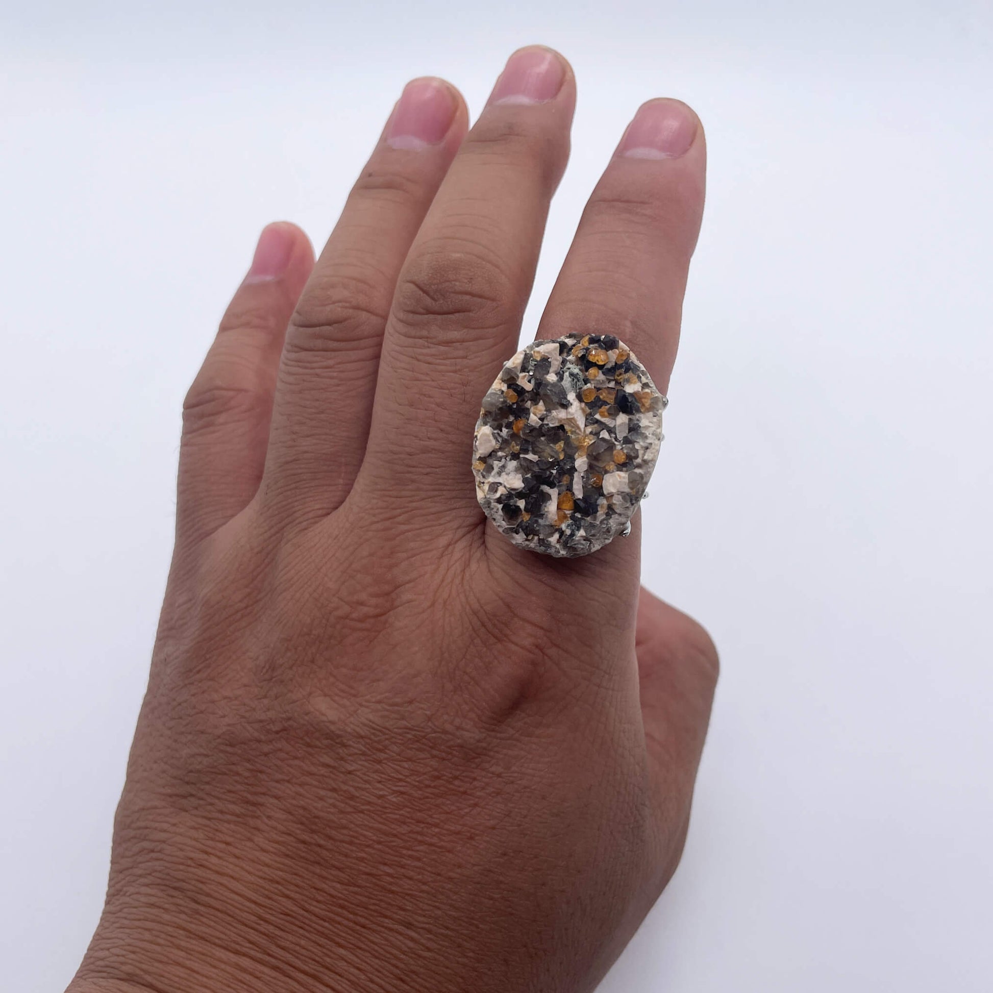 This raw stone ring symbolizes the gift and uniqueness of nature. The irregular shape and rich colors of natural raw stones represent a unique self, and each one is different. At the same time, since the raw stone comes from the earth, it also symbolizes the connection with nature, conveying a simple and authentic attitude towards life, as well as the admiration and pursuit of natural beauty.